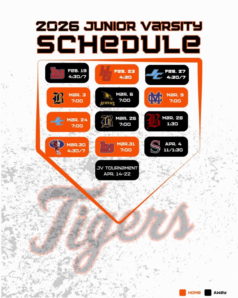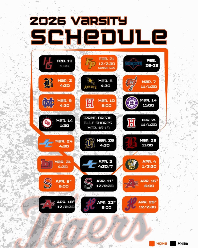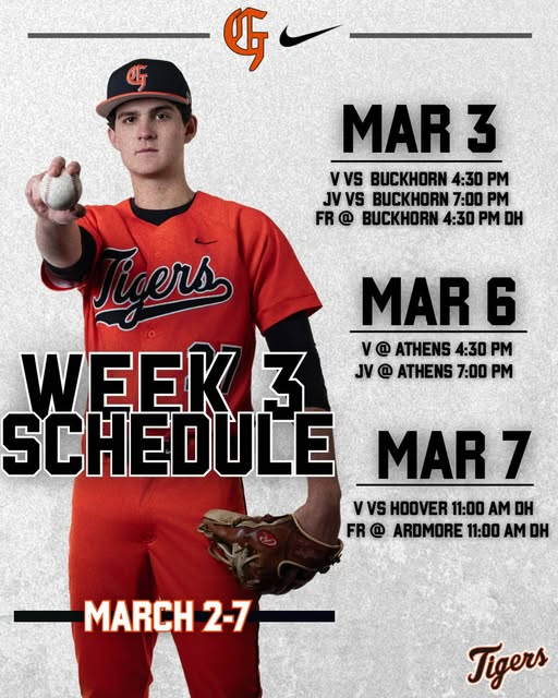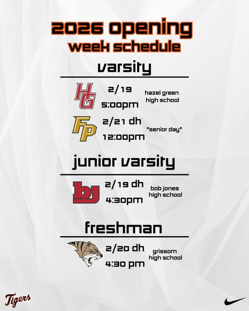 Week 1 is finally here! Here is the 2026 opening week schedule for your Grissom Tiger Baseball teams!