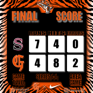 Grissom fell 7-4 to Sparkman in game 1 on Saturday despite out-hitting them eight to four. Dalton Dardin led the Tigers with two hits.