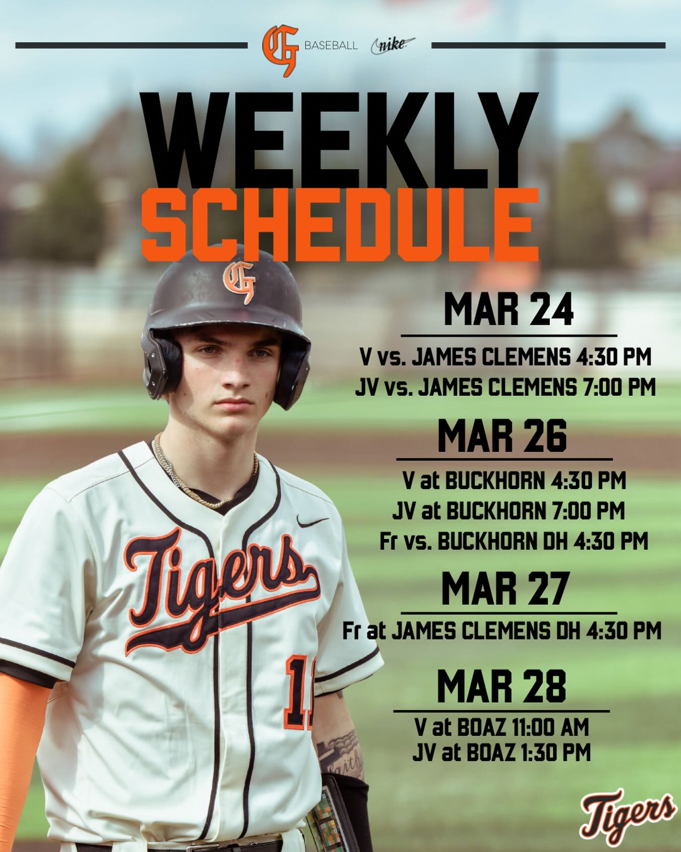 Week 1 is finally here! Here is the 2026 opening week schedule for your Grissom Tiger Baseball teams!